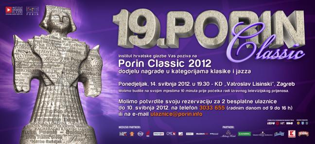 Osim što će doznati imena dobitnika Porina u kategorijama klasike i jazza, publika će uživati i u rijetkim poslasticama: prva od njih zasigurno je nastup Radovana Vlatkovića. Hornist svjetskog glasa tom će prilikom dobiti Porin za životno djelo. Publika Lisinskog – ali i izravnog prijenosa priredbe na Hrvatskoj televiziji i radiju – uvjerit će se s koliko pokrića to važno priznanje odlazi u njegove ruke. Vlatković, nekadašnji zagrebački student i dugogodišnji prvi hornist Simfonijskog orkestra Berlinskog radija, danas je profesor u Salzburgu, Madridu, Zürichu i Londonu. O tom solistu iznimne karijere s koncertima po cijelom svijetu glazbena kritika s oduševljenjem piše da iz "teškog instrumenta izvlači božanski zvuk" .