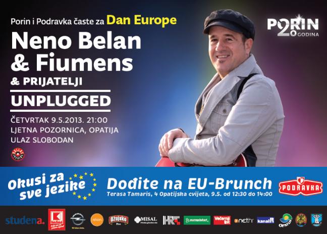 Budući da je taj dan i Dan Europe, nakon press konferencije, Porinov najveći ovogodišnji sponzor Podravka poziva sve uzvanike, gurmane te sadašnje i buduće Europljane na „EU-Brunch“ . Druženje glazbenika, diplomata i kvarnerskih uglednika će se, pod motom „Okusi za sve jezike“ održati na Terasi Tamaris ispred Press Centra od 12:30 do 14:00 sati.