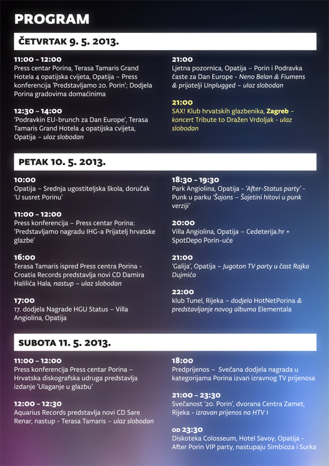 U privitku detaljan program lokacija i događanja zbog kojih će opatijska rivijera ovog vikenda odjekivati glazbom - vidimo se na Porinu!